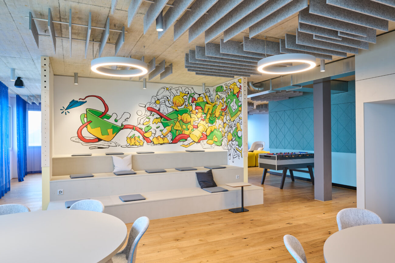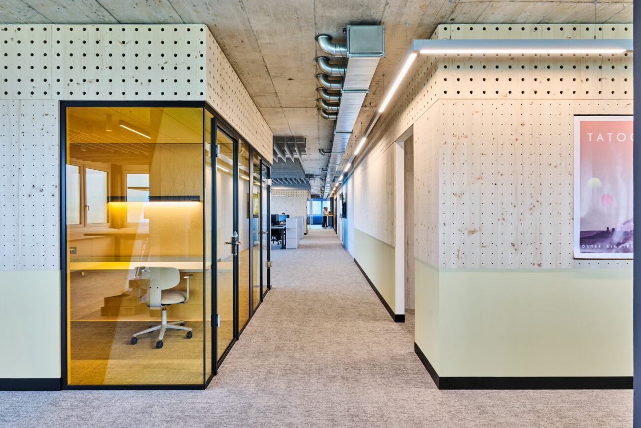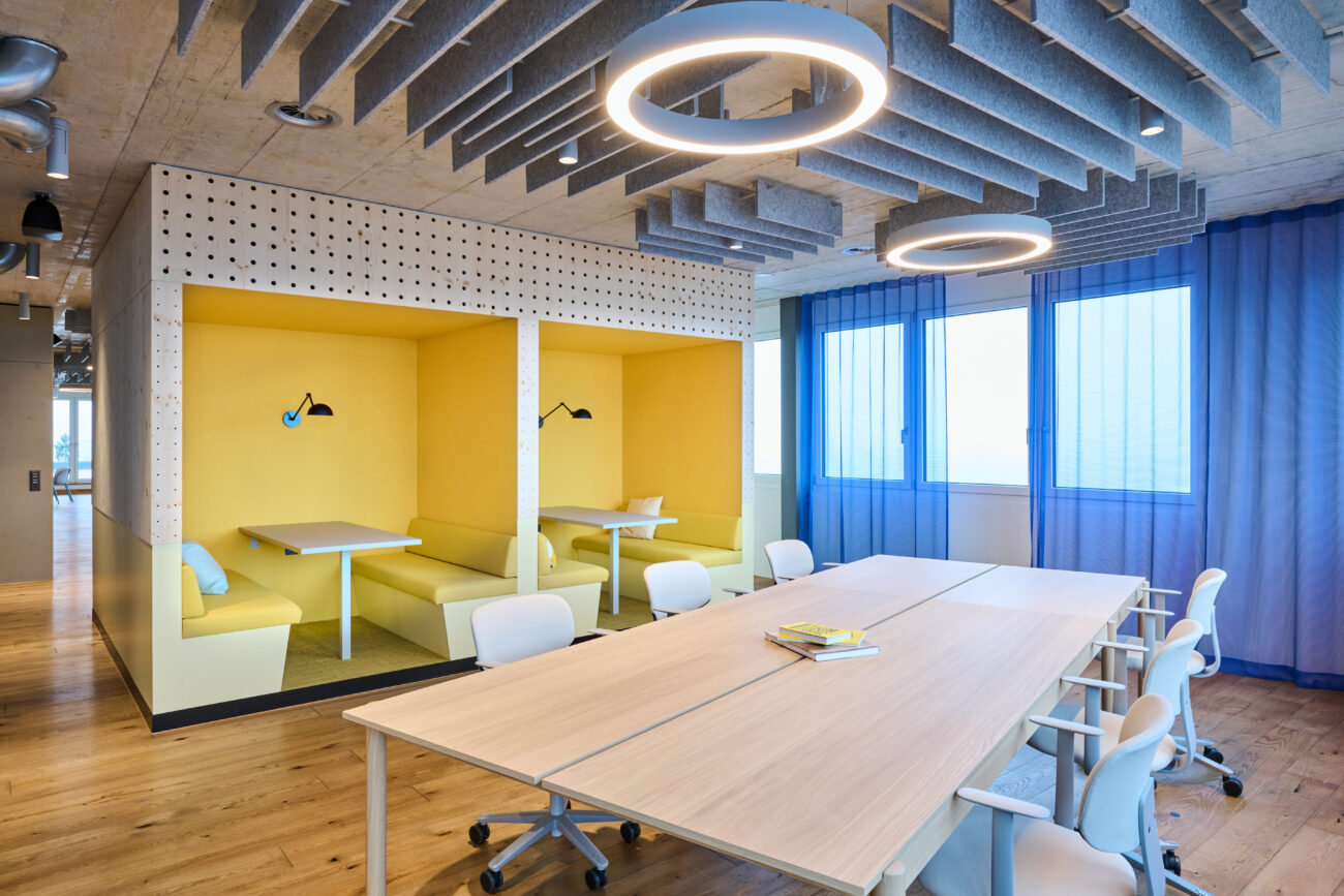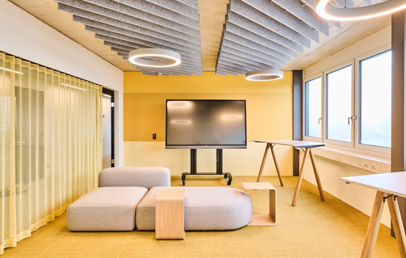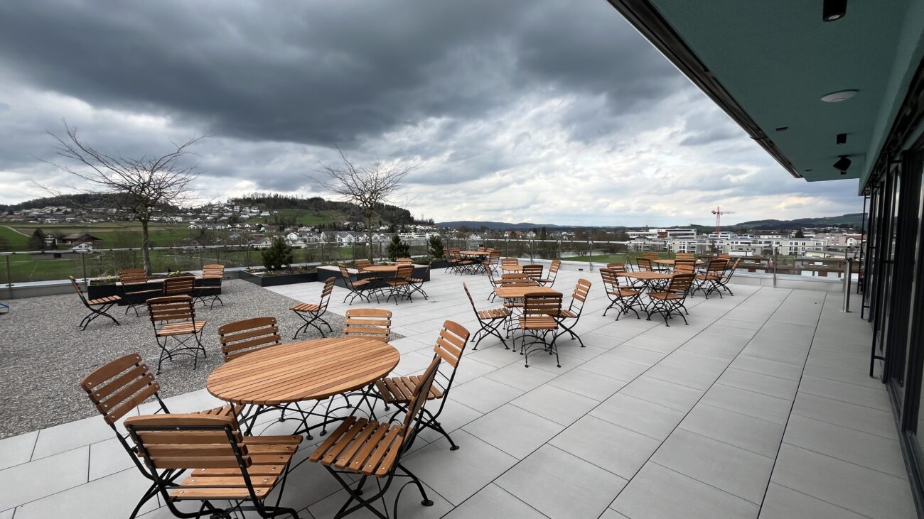 Die Rey Technology AG stiess an ihre Kapazitätsgrenzen. Um ihren Mitarbeitern ein optimales Arbeitsumfeld zu bieten, wurde das Gebäude um zwei Stockwerke erweitert und modernisiert. Im neuen zweiten Stock entstanden moderne Büroarbeitsplätze mit Besprechungsräumen und abgetrennten Bereichen für mehr Privatsphäre. Im dritten Stock wurde ein ansprechender Mensabereich eingerichtet, gestaltet von einem Architekten mit besonderem Fokus auf Schall-, Licht- und Designaspekte. Wir übernahmen die Bauleitung für die Aufstockung und unterstützten den Architekten bei der Leitung des Innenausbaus.