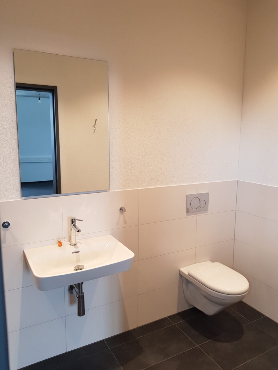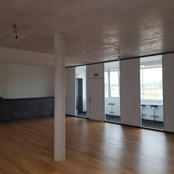 Der Ostteil wie auch das Treppenhaus vom Bürogebäude der Dogimo AG wurde um ein Geschoss erhöht und somit entstand ca. 200m2 zusätzliche Bürofläche inkl. Nasszellen und Teeküchen.