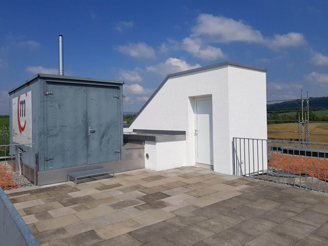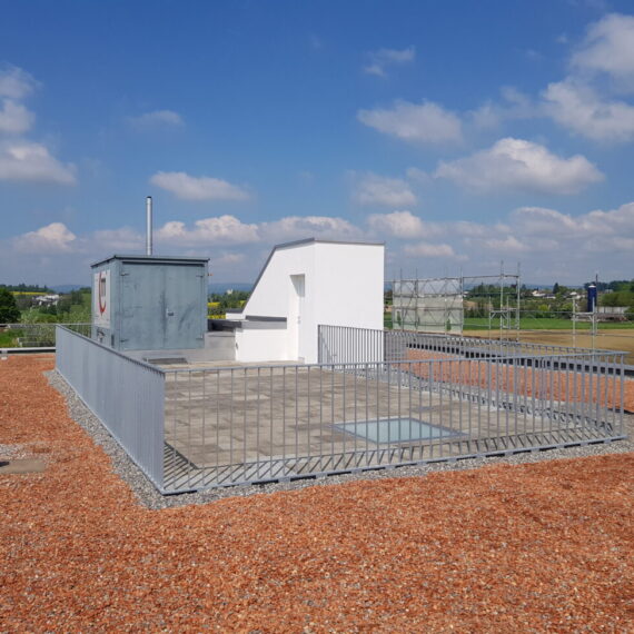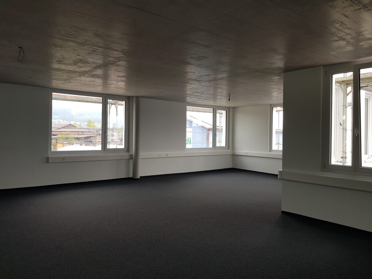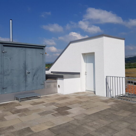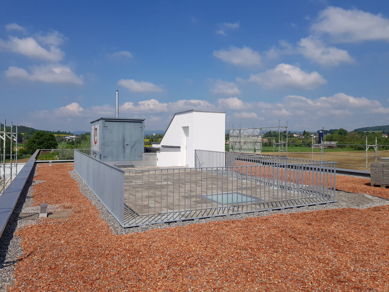 Die Büroaufstockung wurde, wie der Bestand in Massivbauweise erstellt und mit der Kompaktfassade an den Bestand ergänzt. Auf dem neuen Dach wurde die Terrasse realisiert. Im Innern hat man durch die Skeletbauweise und den Leichtbauwänden jederzeit die Möglichkeit die Räume nach neuen Ansprüchen anzupassen.