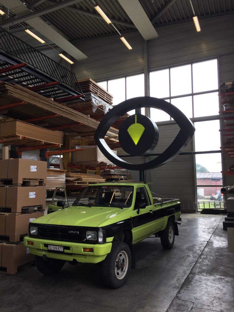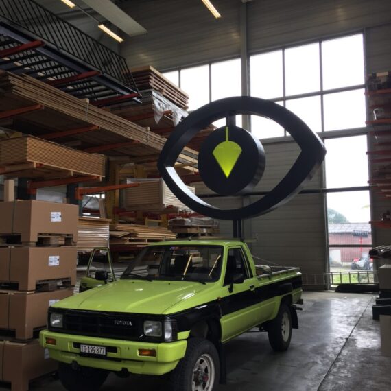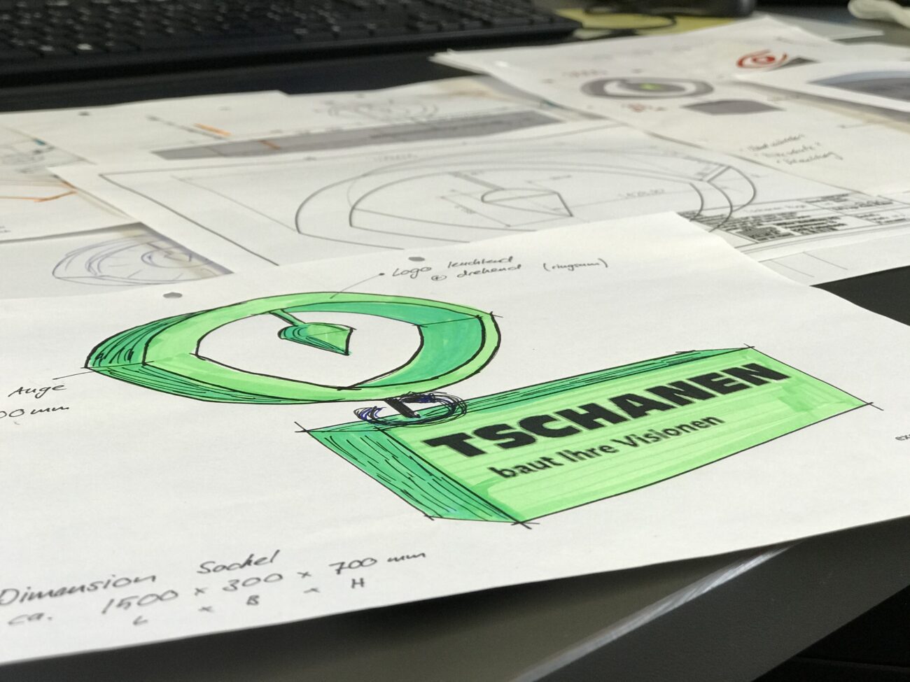 Die Idee der Tschanen AG ihr Logo leuchtend, drehend und in Übergrösse zur Einweihung des Werkhofes zu erstellen wurde schnell zum Projekt. Zuerst entstand die Idee in unseren Köpfen, dann auf Papier und schlussendlich wurde das „Tschanen-Auge“ realisiert. Die Entwicklung der Idee mit allen Herausforderungen war ein Highlight dieses Projektes.