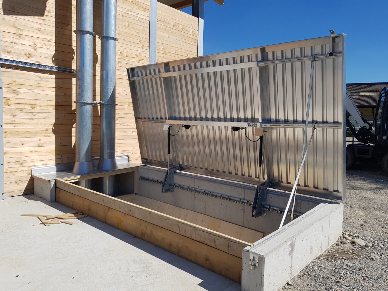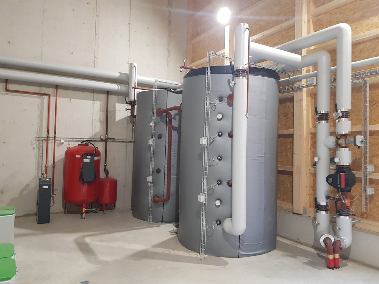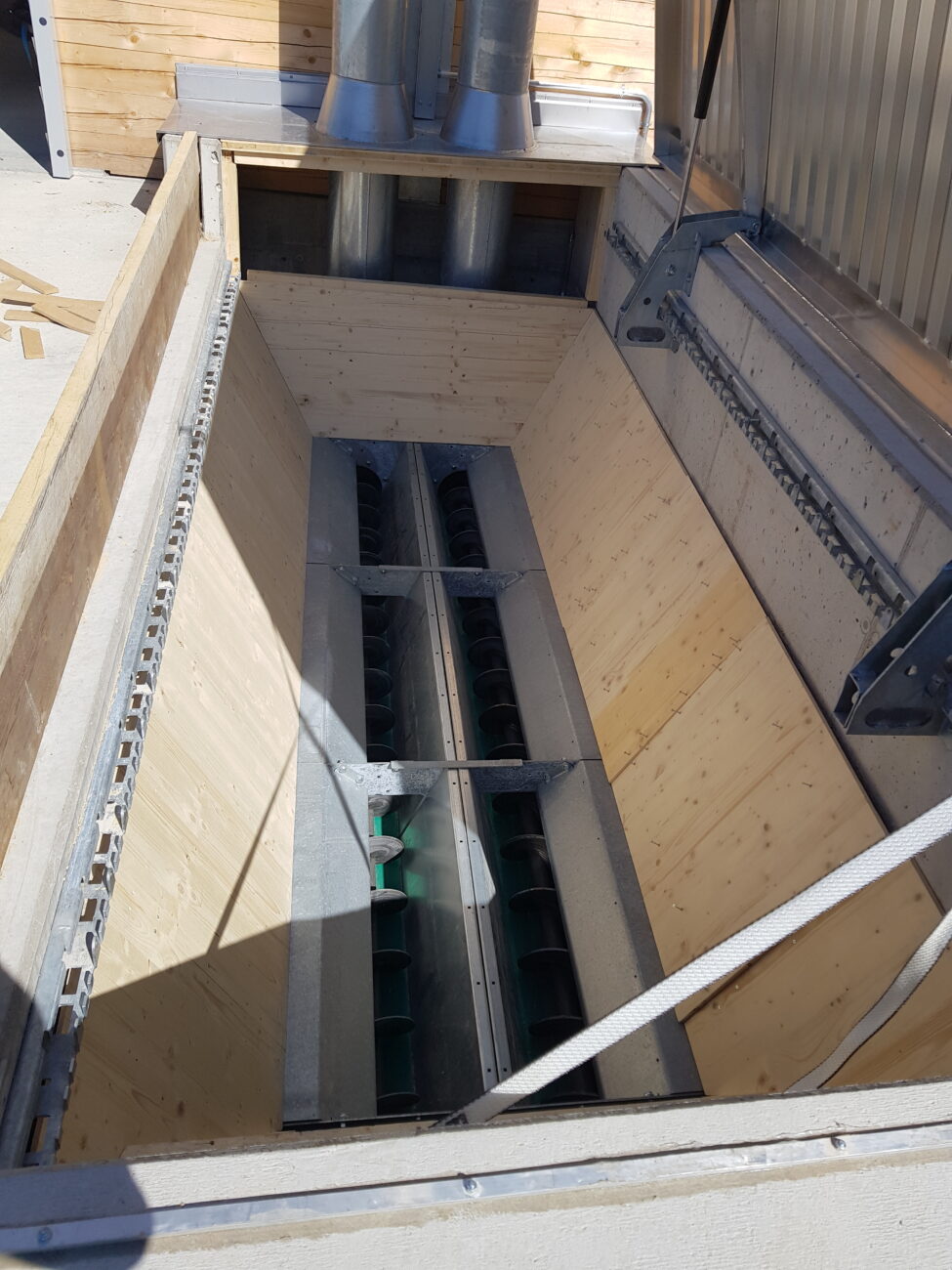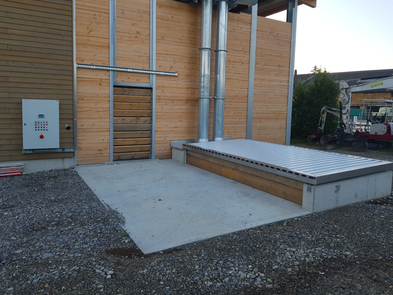 In Rickenbach war es erforderlich, die veraltete Schnitzelheizung zu ersetzen und gleichzeitig den Wärmeverbund zu erweitern. Der Neubau wurde für eine Schnitzelheizung mit einer Leistung von 260 KW sowie einen Schnitzelsilo mit einem Fassungsvermögen von etwa 100m3 konzipiert. Vor dem Schnitzelsilo befindet sich eine Abladestelle mit einer Senkrechtbefüllschnecke, die die Schnitzel in den Silo fördert. Im Norden wurde eine Einstellhalle für das Gemeindewerk errichtet, und im Osten konnten ein Salzsilo sowie ein Waschplatz realisiert werden. Darüber hinaus wurde das Fernwärmeleitungsnetz um drei neue Bezüger erweitert, und die alten Ölheizungen wurden ersetzt.