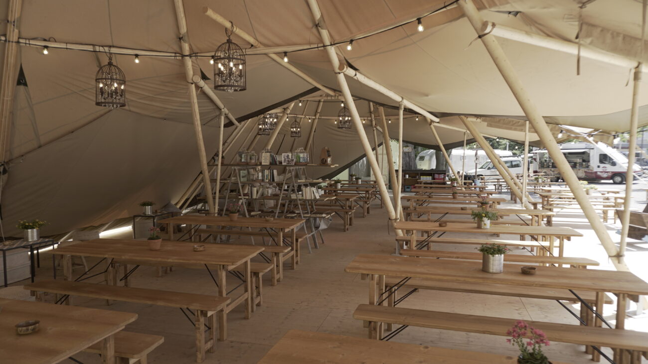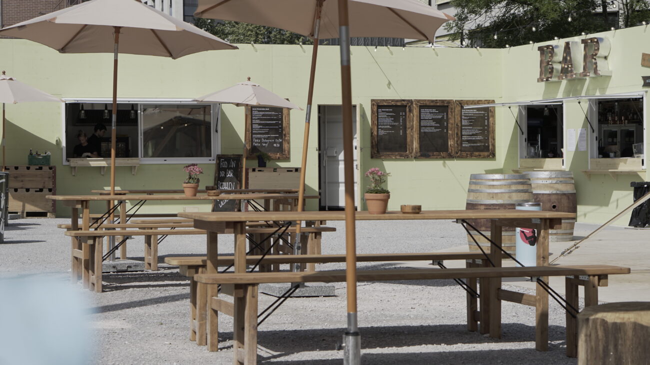 Neben dem Bahnhof Oerlikon schlug Max seine Zelte auf. Das Sommergartenrestaurant «Zum frischen Max». Ein 440m2 grosses Podest und zwei Tipi-Zelte unter denen diverse Gerichte und Drinks genossen werden können, bilden neben der Containeranlage für Bar und Küche das Zentrum des Sommergartens. Der Bau wurde innert kürzester Zeit realisiert. Von der Baueingabe bis zur Eröffnung vergingen gerade mal 3 Monate, der Aufbau des Sommergartens wurde in nur 11 Tagen realisiert. Dank super Zusammenarbeit mit unseren Geschäftspartnern, konnten wir unserem Kunden eine schnelle Eröffnung ermöglichen.