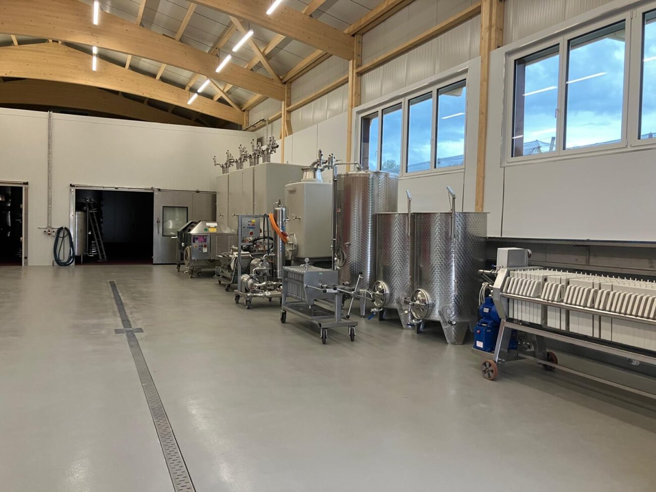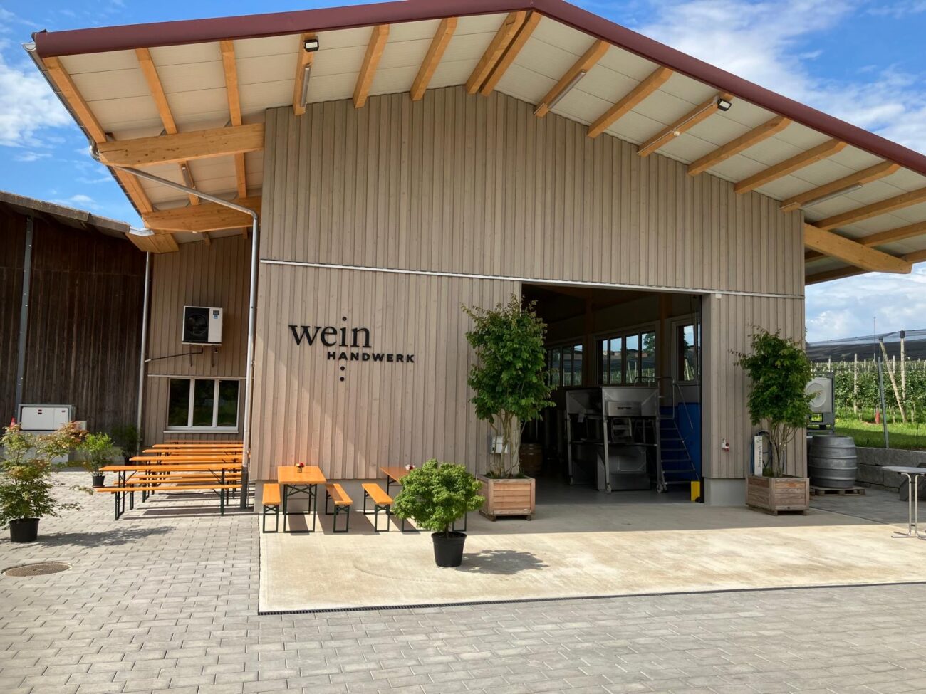 Wir durften für die Weinhandwerk AG in Hüttwilen ihre neue Halle zur Weinproduktion planen und realisieren. Seit 2023 keltert hier die Weinhandwerk AG ihre eigenen Trauben und betreibt zudem eine Lohnkelterei. Die neue Halle wurde speziell auf die Anforderungen des Unternehmens abgestimmt und umgesetzt. Sie umfasst einen großzügigen Nassbereich, ein Büro sowie zwei grosse Kühlräume. Wir freuen uns schon auf den Wein, der in der neuen Halle der Weinhandwerk AG entsteht.