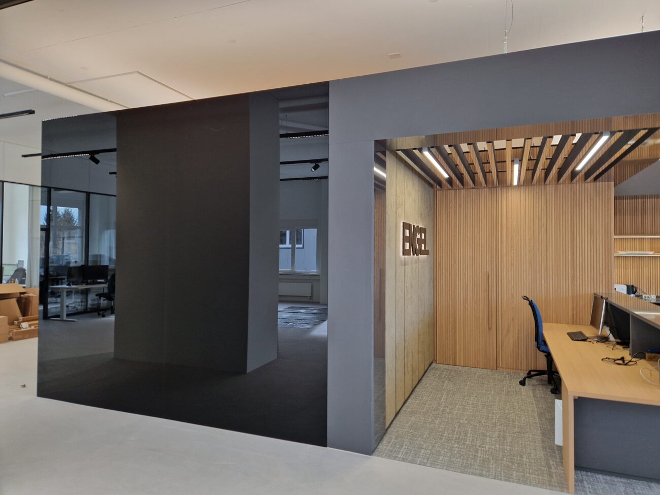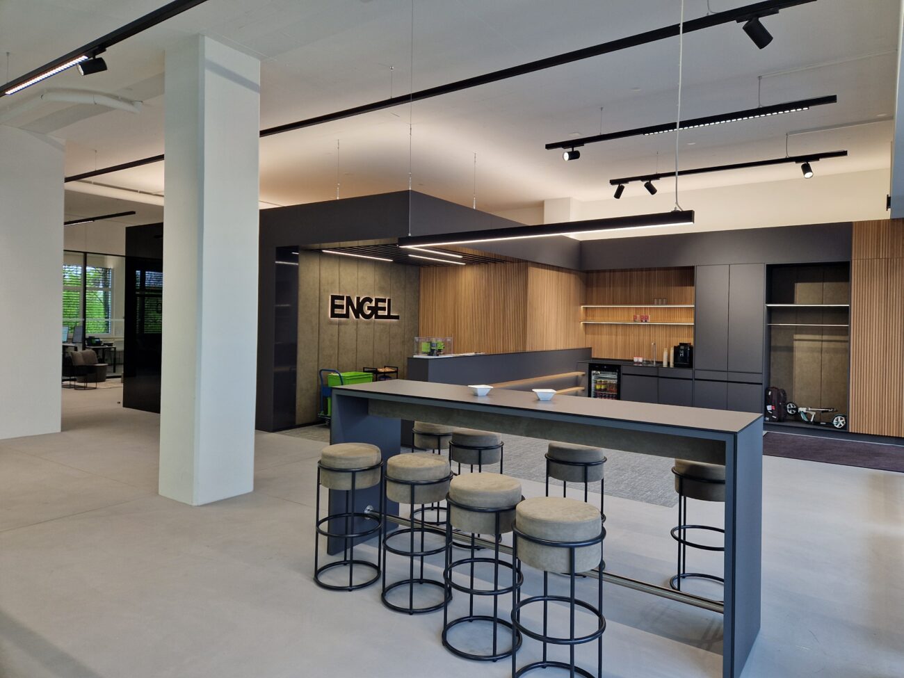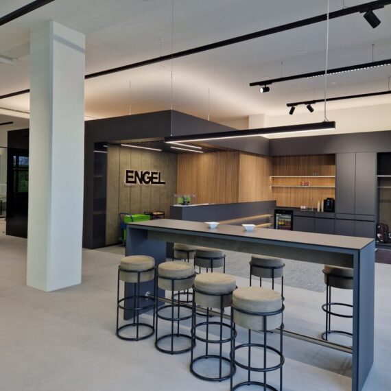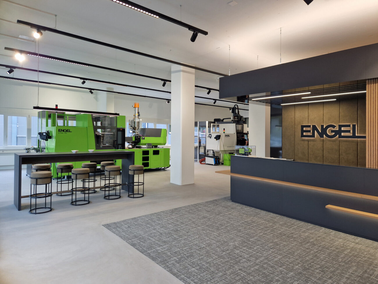 Für die Firma ENGEL wurde der ehemalige Lager- und Werkstattbereich in ein modernes Trainingszentrum umgebaut. Entstanden ist eine attraktive Ausstellungsfläche für Spritzgiessmaschinen sowie passende Schulungsräume mit integrierten Nasszellen. Ergänzend dazu wurden die Büroflächen umfassend saniert und an das neue Designkonzept angepasst.