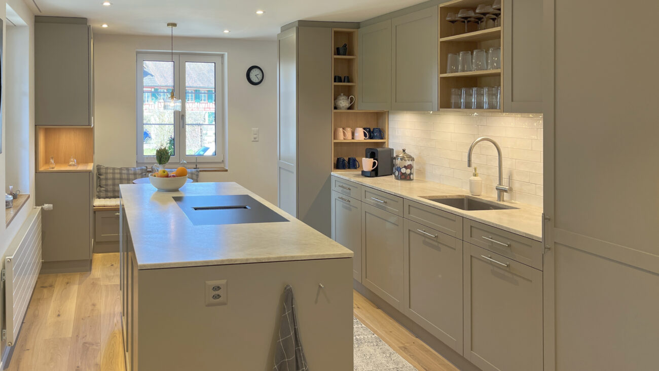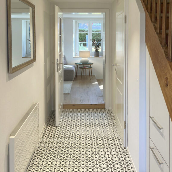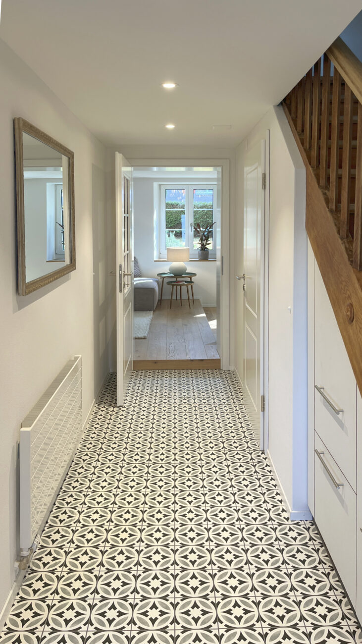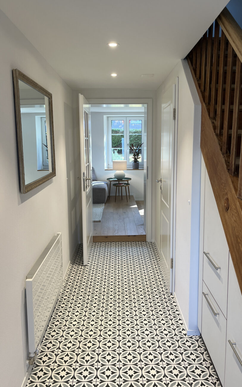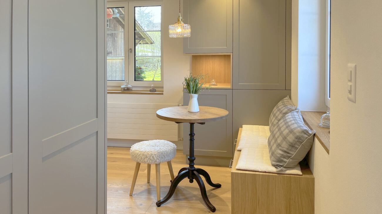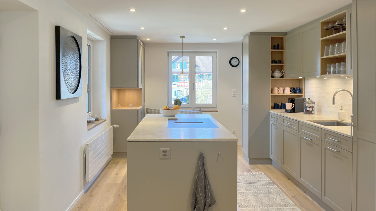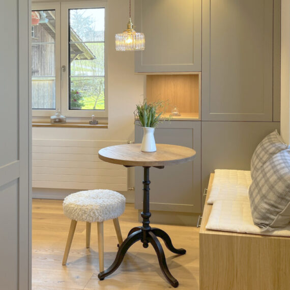 Der Umbau des Erdgeschosses hat der Wohnung neues Leben eingehaucht. Durch eine durchdachte Neuaufteilung der Räume entstand ein offenes, harmonisches Wohngefühl. Eine neue, speziell für den Raum konzipierte Küche fügt sich nahtlos in das Gesamtbild ein, während das WC an einen optimaleren Standort verlegt wurde. Ein besonderes Highlight bildet der Ofen: Der alte wurde sorgfältig rückgebaut, und der neue entstand teilweise aus dessen originalen Kacheln – eine gelungene Verbindung von Tradition und Moderne. Ergänzt wird das Projekt durch gedämmte Aussenwände sowie neue Böden im gesamten Geschoss. Das Ergebnis überzeugt mit Wohnkomfort, Charakter und einer rundum gelungenen Atmosphäre.