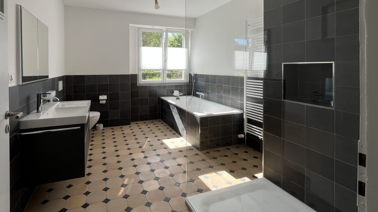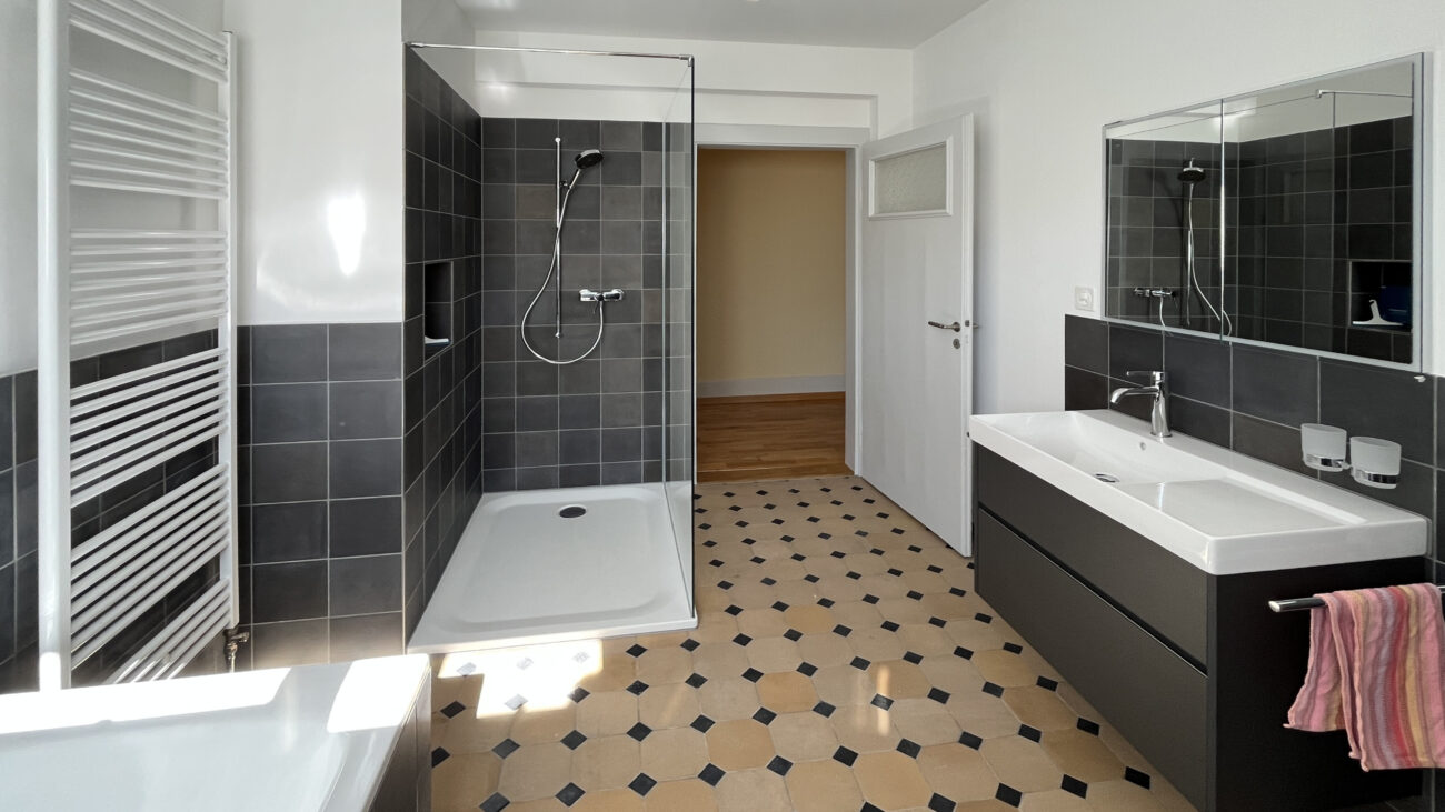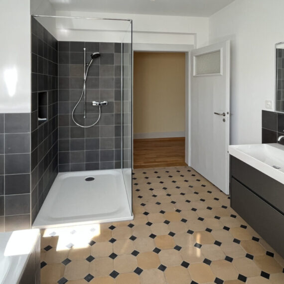 Diese charmante Altbauwohnung wurde umfassend saniert und modernisiert – mit viel Gespür für den ursprünglichen Charakter. Die alten Holzböden wurden abgeschliffen und frisch versiegelt, sodass sie ihren natürlichen Charme zurückerhielten. Die Holzumrandungen der Fenster wurden aufgefrischt und die Wände komplett neu gestrichen und sorgen für ein frisches, harmonisches Wohngefühl. Ein besonderer Fokus lag auf der Neugestaltung der Raumaufteilung: Das in die Jahre gekommene Badezimmer sowie angrenzende Mauern wurden entfernt, um Platz für eine moderne, offene Küche zu schaffen. Die frühere Küche wich einem neu gebauten Bad, das nun mit Dusche und Badewanne modernen Komfort bietet.